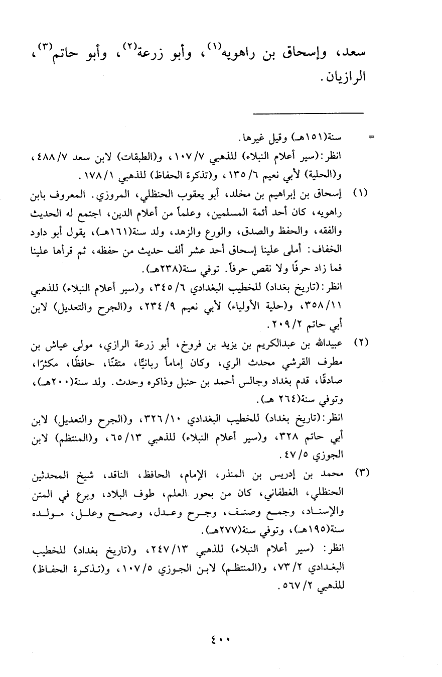 سعد وإسحاق بن راهوية وأبو زرعة وأبو حاتم الرازيان
