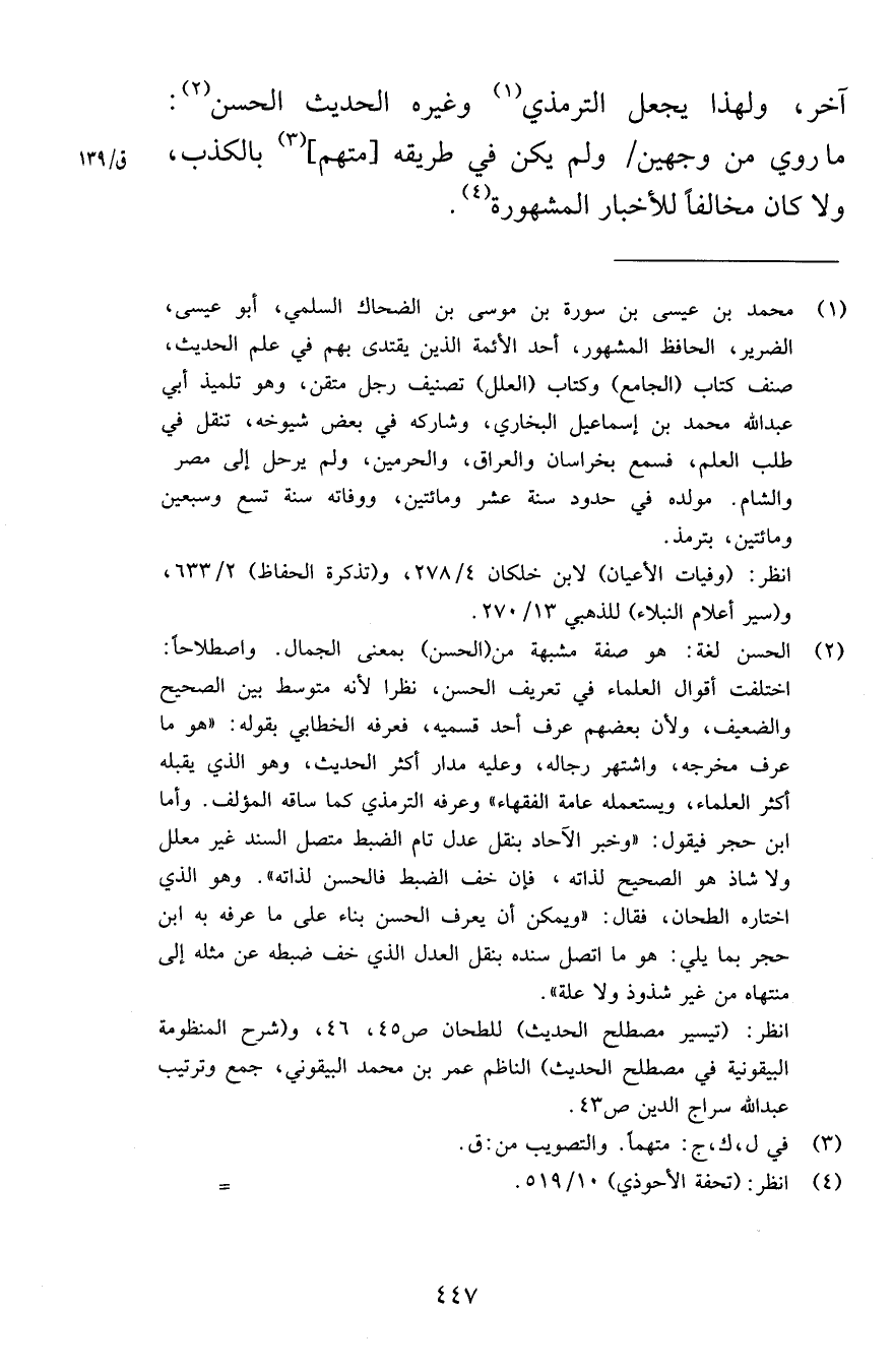 آخر ولهذا يجعل الترمذي وغيره الحديث الحسن ما روي من وجهين ولم يكن في طريقه متهم بالكذب ولا كان مخالفاً للأخبار المشهورة