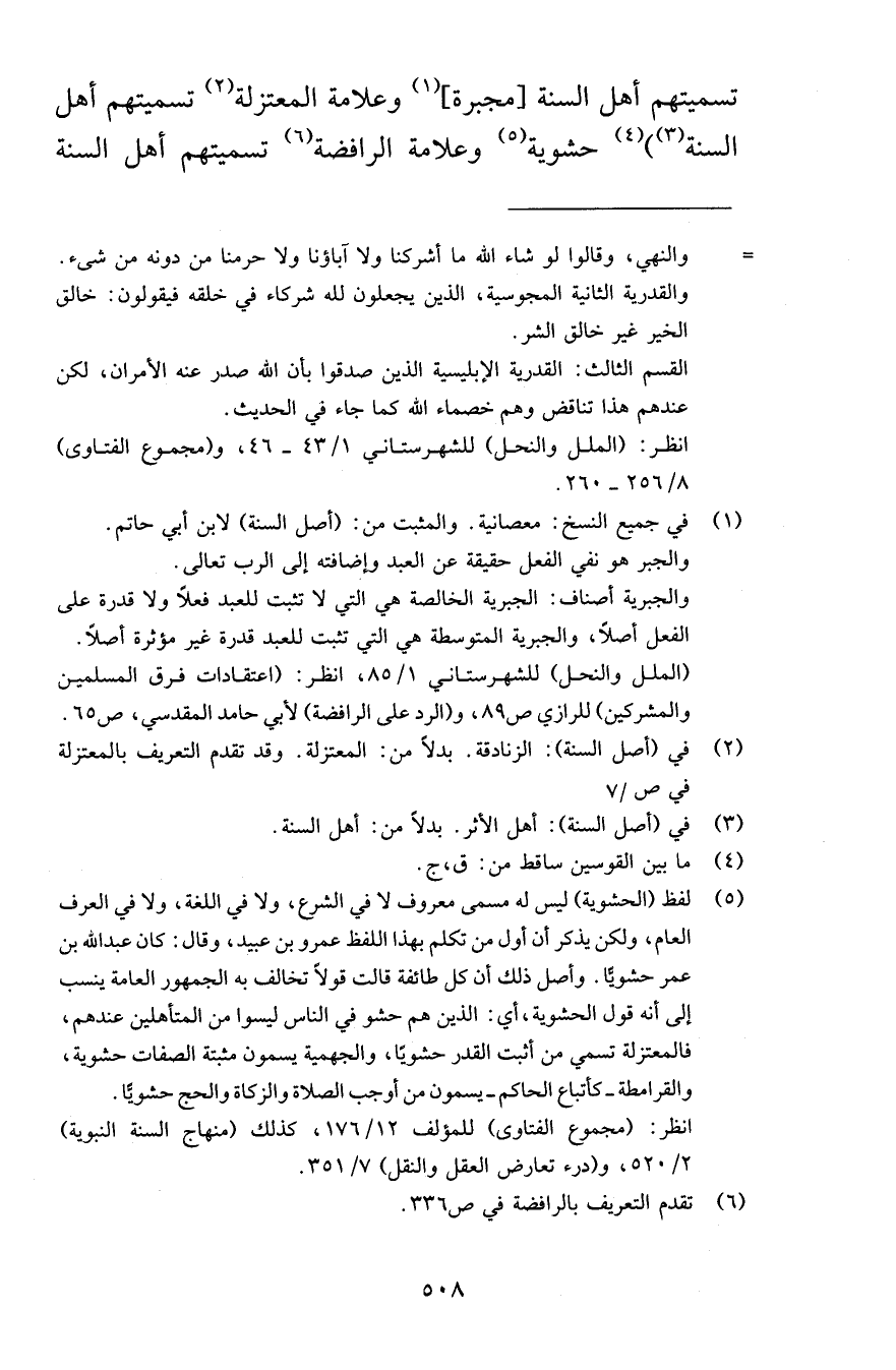 تسميتهم أهل السنة مجبرة وعلامة المعتزلة تسميتهم أهل السنة حشوية وعلامة الرافضة تسميتهم أهل السنة