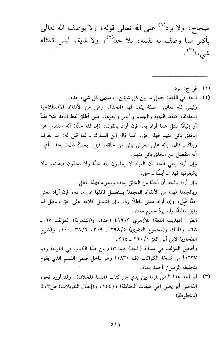 صحاحا ولا يرد على الله تعالى قوله ولا يوصف الله تعالى بأكثر مما وصف به نفسه بلا حد ولا غاية وليس كمثله شيء