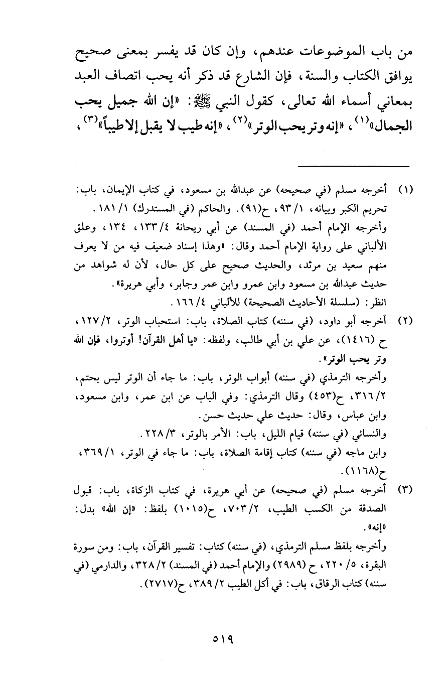 من باب الموضوعات عندهم وإن كان قد يفسر بمعنى صحيح يوافق الكتاب والسنة فإن الشارع قد ذكر أنه يحب اتصاف العبد بمعاني أسماء الله تعالى كقول النبي صلى الله عليه وسلم إن الله جميل يحب الجمال إنه وتر يحب الوتر إنه طيب لا يقبل إلا طيباً