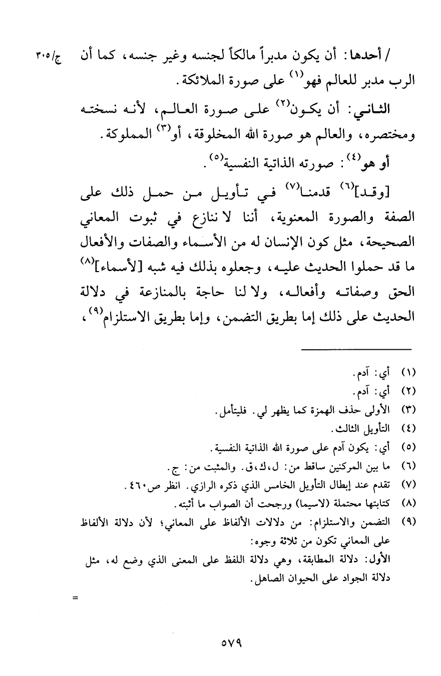 أحدها أن يكون مدبراً مالكاً لجنسه وغير جنسه كما أن الرب مدبر للعالم فهو على صورة الملائكة الثاني أن يكون على صورة العالم لأنه نسخته ومختصره والعالم هو صورة الله المخلوقة أو المملوكة أو هو صورته الذاتية النفسية وقد قدمنا في تأويل من حمل ذلك على الصفة والصورة المعنوية أننا لا ننازع في ثبوت المعاني الصحيحة مثل كون الإنسان له من الأسماء والصفات والأفعال ما قد حملوا الحديث عليه وجعلوه بذلك فيه شبه لأسماء الحق وصفاته وأفعاله ولا لنا حاجة بالمنازعة في دلالة الحديث على ذلك إما بطريق التضمن وإما بطريق الاستلزام