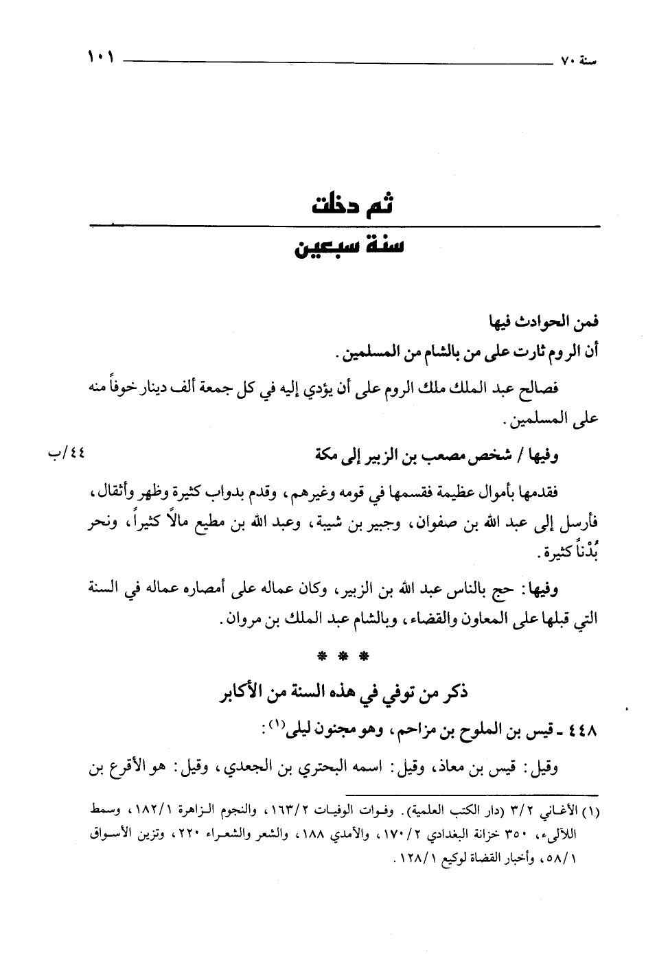 [1] الأغاني 2/ 3 (دار الكتب العلمية) . وفوات الوفيات 2/ 163، والنجوم الزاهرة 1/ 182، وسمط اللآلئ، 350 خزانة البغدادي 2/ 170، والآمدي 188، والشعر والشعراء 220، وتزين الأسواق 1/ 58، وأخبار القضاة لوكيع 1/ 128.