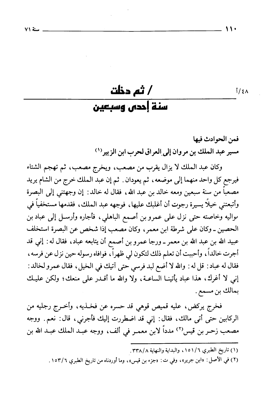 [1] تاريخ الطبري 6/ 151، والبداية والنهاية 8/ 338.