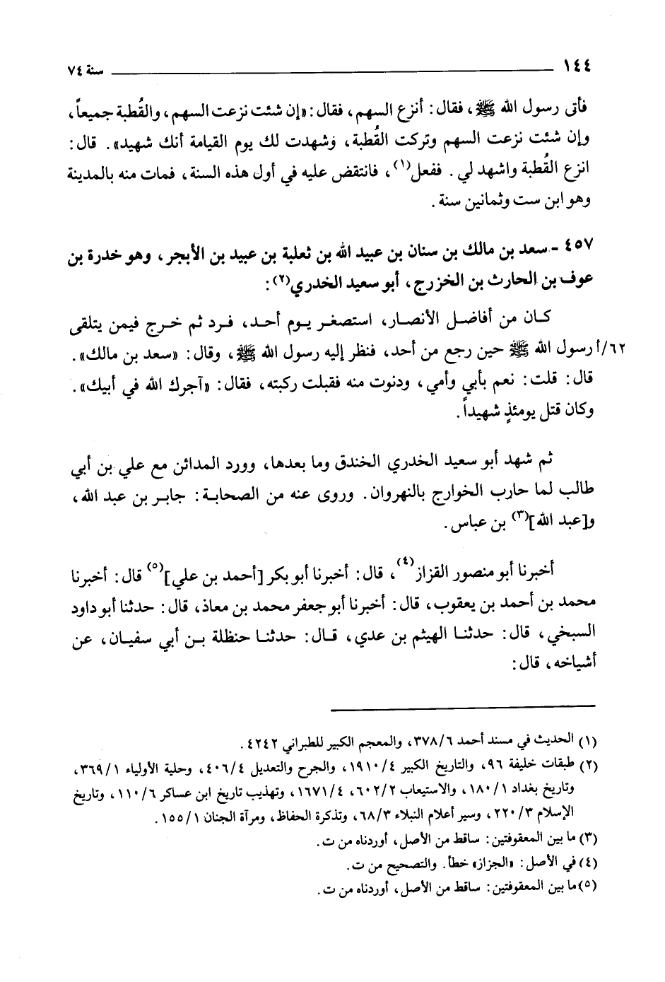 457- سعد بن مالك بن سنان بن عبيد الله بن ثعلبة بن عبيد بن الأبجر، وهو خدرة بن عوف بن الحارث بن الخزرج، أبو سعيد الخدري [2] :