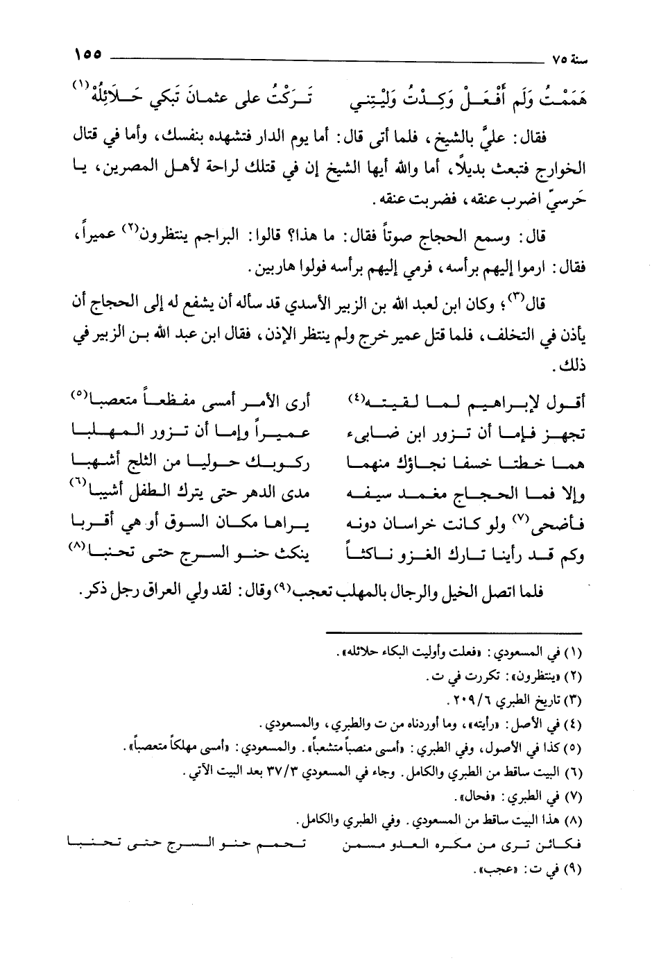 [6] البيت ساقط من الطبري والكامل. وجاء في المسعودي 3/ 37 بعد البيت الآتي.