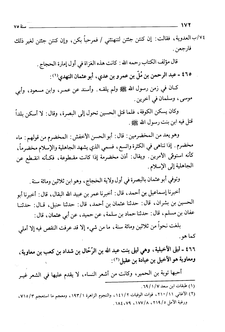 466- ليلى الأخيلية، وهي ليلى بنت عبد الله بن الرحال بن شداد بن كعب بن معاوية، ومعاوية هو الأخيل بن عبادة بن عقيل [2] :