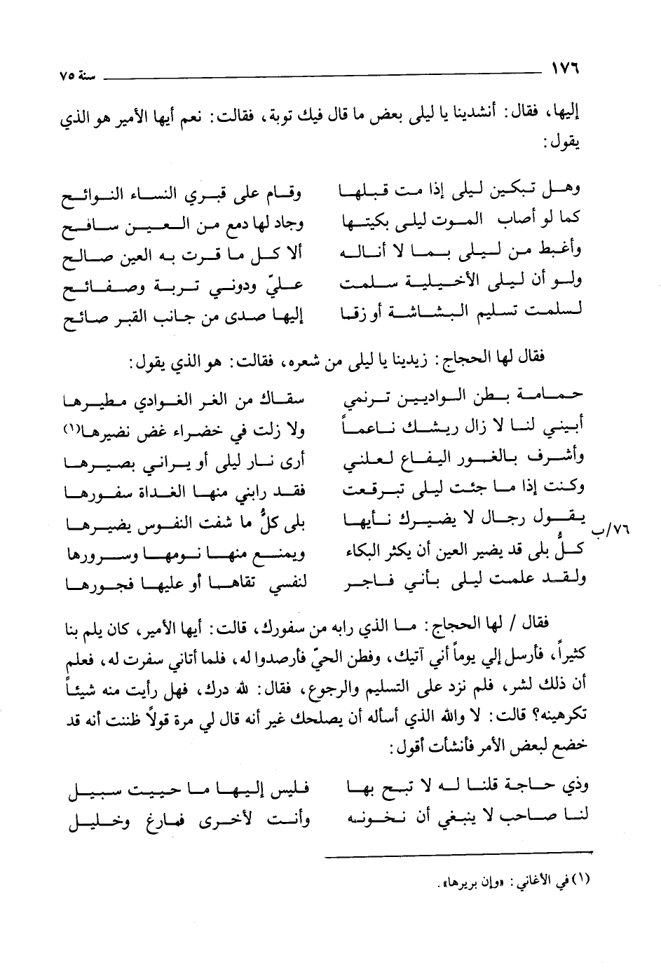 فقال لها الحجاج: زيدينا يا ليلى من شعره، فقالت: هو الذي يقول: