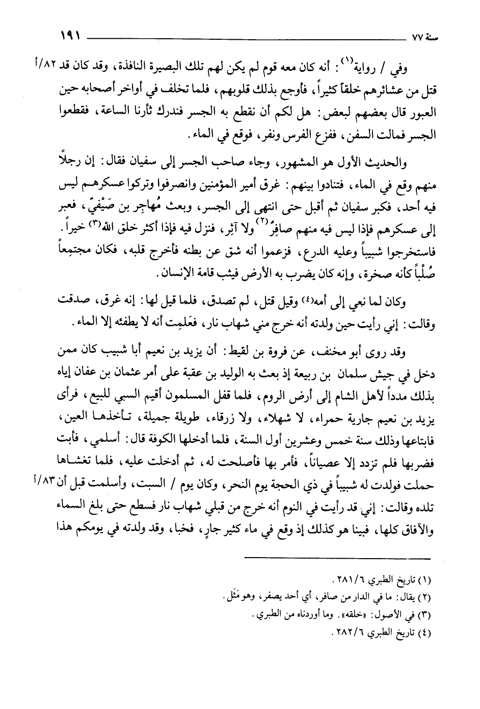 والحديث الأول هو المشهور، وجاء صاحب الجسر إلى سفيان فقال: إن رجلا منهم وقع في الماء، فتنادوا بينهم: غرق أمير المؤمنين وانصرفوا وتركوا عسكرهم ليس فيه أحد، فكبر سفيان ثم أقبل حتى انتهى إلى الجسر، وبعث مهاجر بن صيفي، فعبر إلى عسكرهم فإذا ليس فيه منهم صافر [2] ولا آثر، فنزل فيه فإذا أكثر خلق الله [3] خيرا.