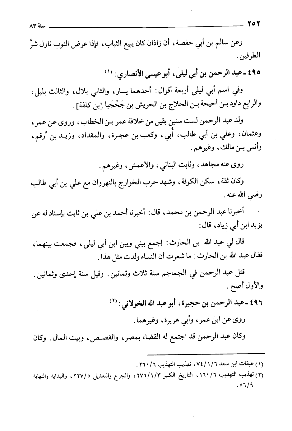 [2] تهذيب التهذيب 6/ 160، التاريخ الكبير 3/ 1/ 276، والجرح والتعديل 5/ 227، والبداية والنهاية 9/ 56.