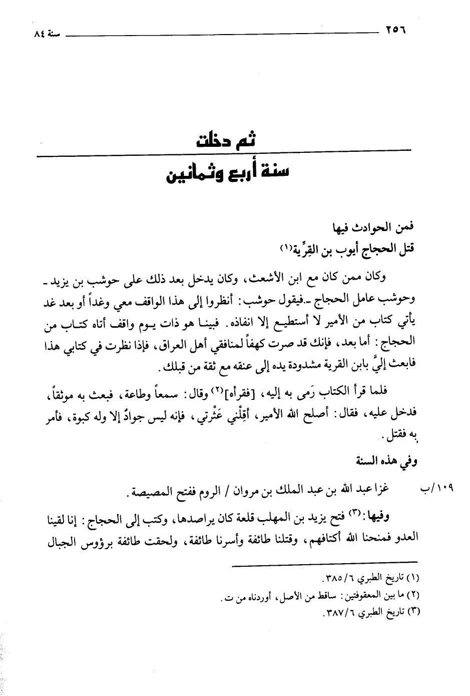 فمن الحوادث فيها قتل الحجاج أيوب بن القرية [1]