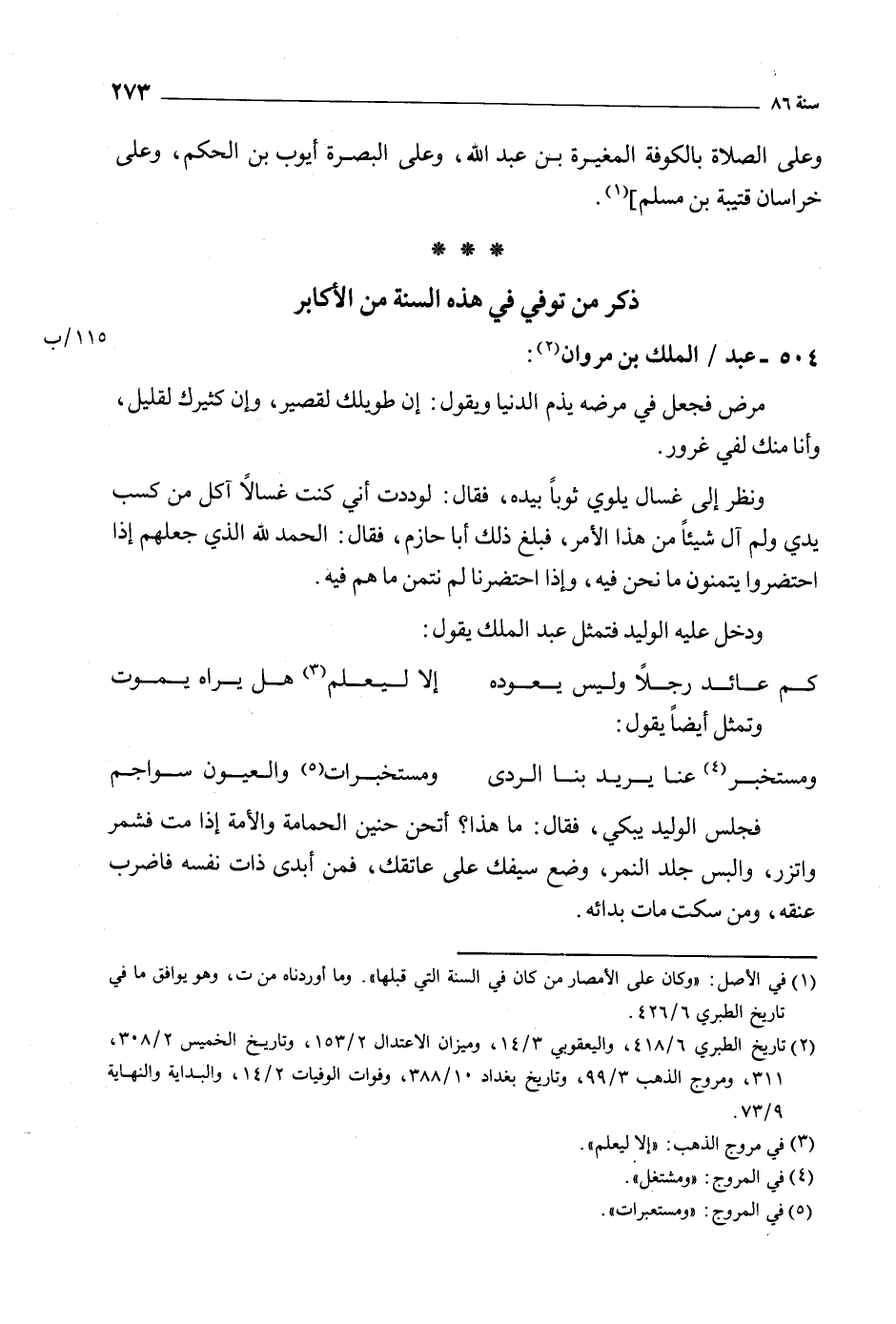 [2] تاريخ الطبري 6/ 418، واليعقوبي 3/ 14، وميزان الاعتدال 2/ 153، وتاريخ الخميس 2/ 308، 311، ومروج الذهب 3/ 99، وتاريخ بغداد 10/ 388، وفوات الوفيات 2/ 14، والبداية والنهاية 9/ 73.