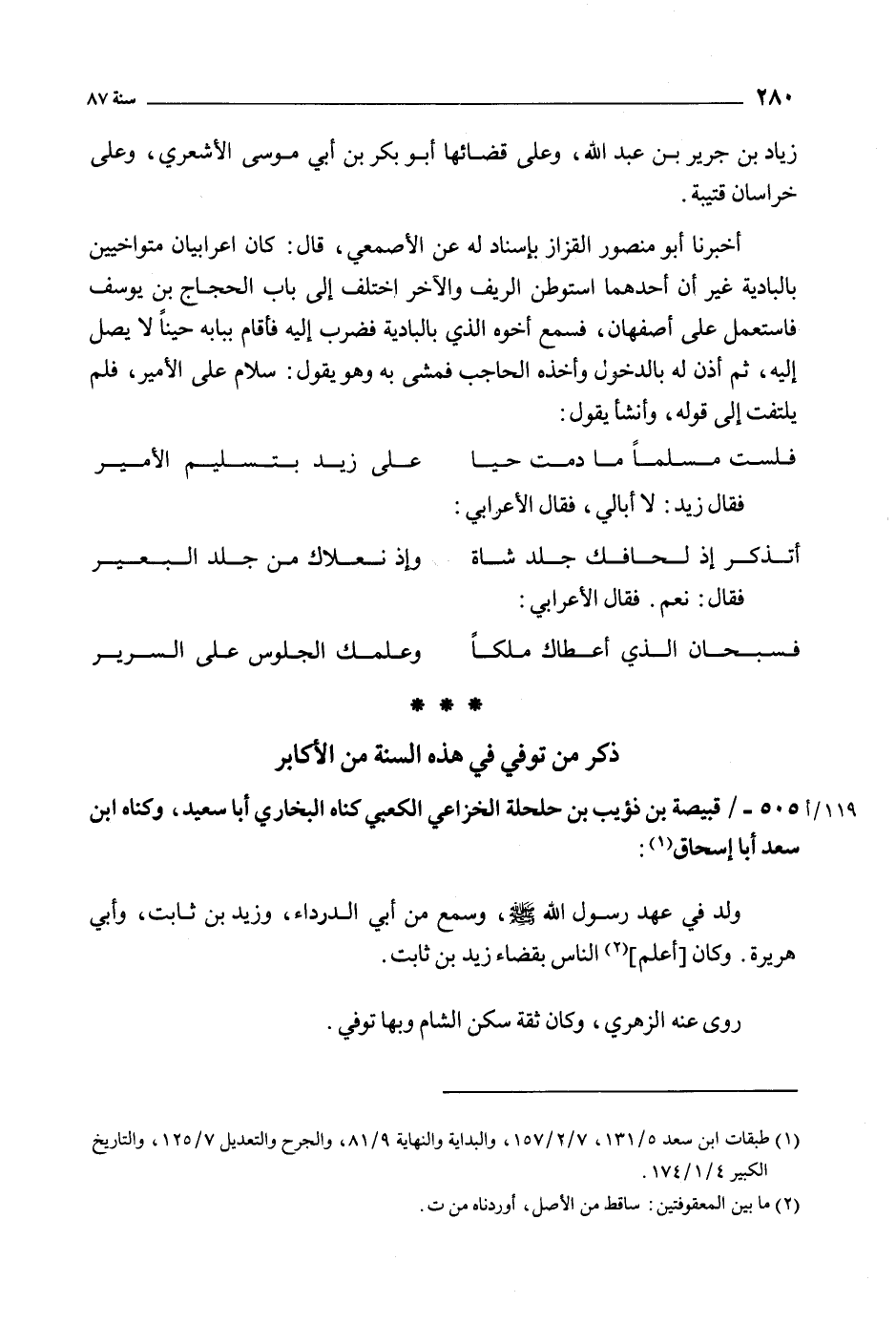 505- قبيصة بن ذؤيب بن حلحلة الخزاعي الكعبي كناه البخاري أبا سعيد، وكناه ابن سعد أبا إسحاق [1] :