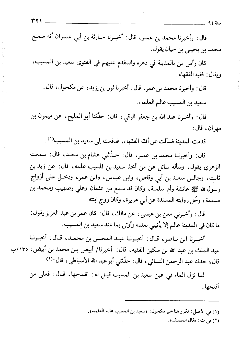 [1] في الأصل: تكرر هنا خبر مكحول: «سعيد بن المسيب عالم العلماء» .