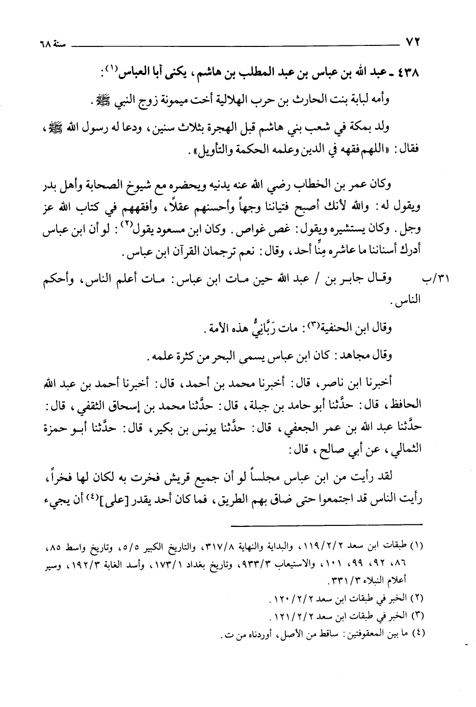 438- عبد الله بن عباس بن عبد المطلب بن هاشم، يكنى آبا العباس [1] :