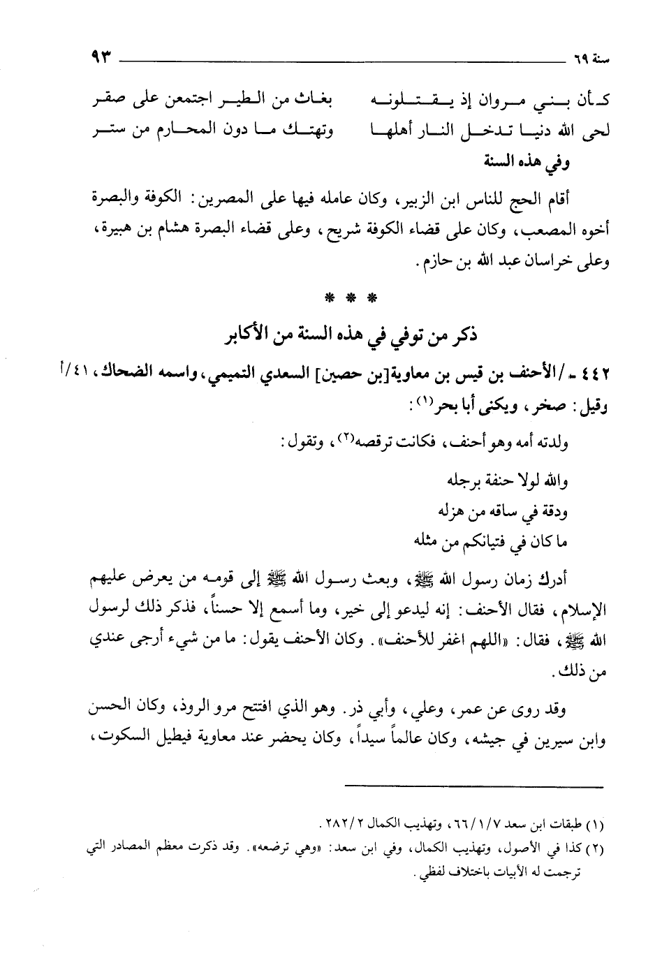 442-/ الأحنف بن قيس بن معاوية [بن حصين] السعدي التميمي، واسمه الضحاك، وقيل: صخر، ويكنى أبا بحر [1] :