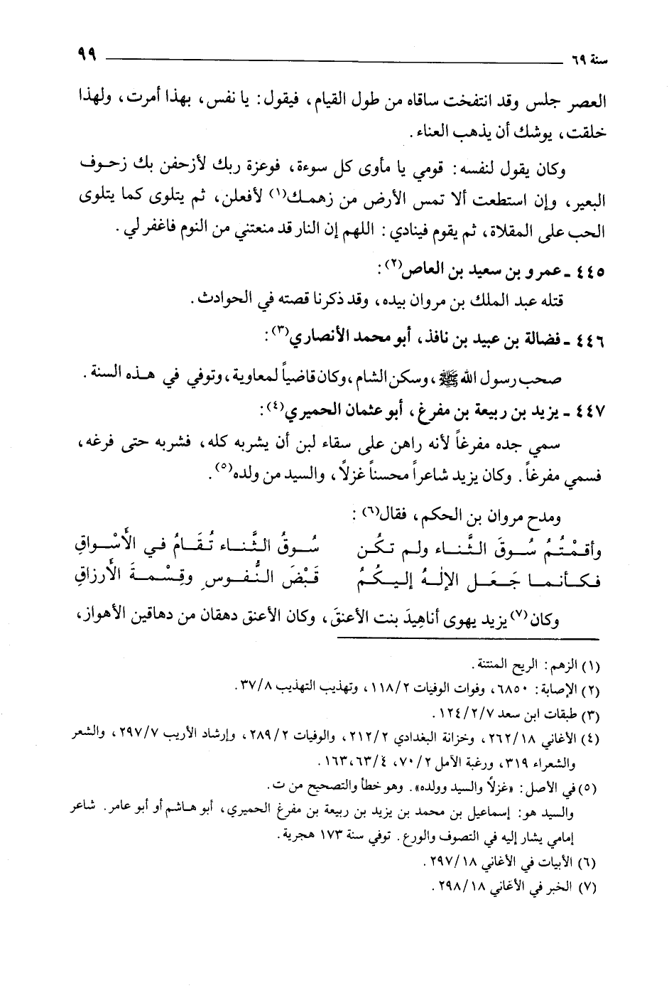[4] الأغاني 18/ 262، وخزانة البغدادي 2/ 212، والوفيات 2/ 289، وإرشاد الأريب 7/ 297، والشعر والشعراء 319، ورغبة الآمل 2/ 70، 4/ 63، 163.