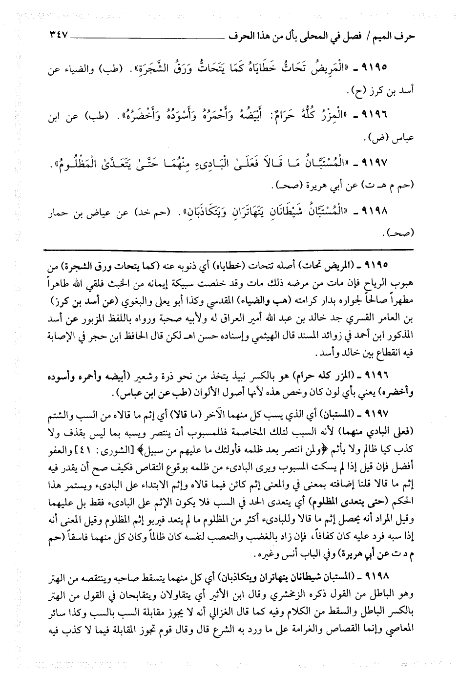 9198 - (المستبان شيطانان يتهاتران ويتكاذبان) أي كل منهما يتسقط صاحبه وينتقصه من الهتر وهو الباطل من القول ذكره الزمخشري.