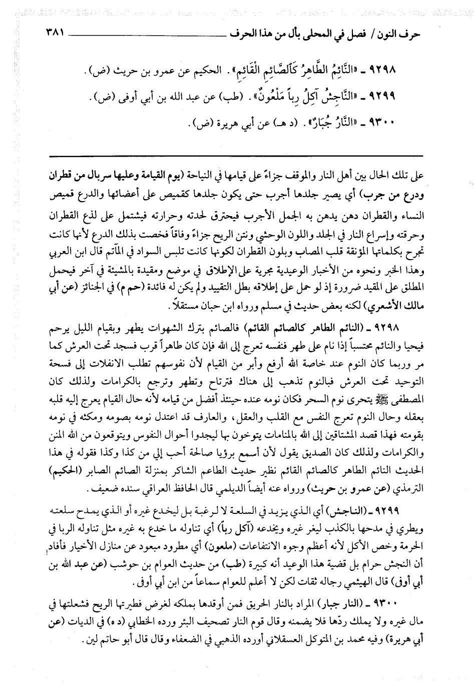 9298 - (النائم الطاهر كالصائم القائم) فالصائم بترك الشهوات يطهر وبقيام الليل يرحم فيحيا والنائم محتسبا إذا نام على طهر فنفسه تعرج إلى الله فإن كان طاهرا قرب فسجد تحت العرش كما مر وربما كان النوم عند خاصة الله أرفع وأبر من القيام لأن نفوسهم تطلب الانفلات إلى فسحة