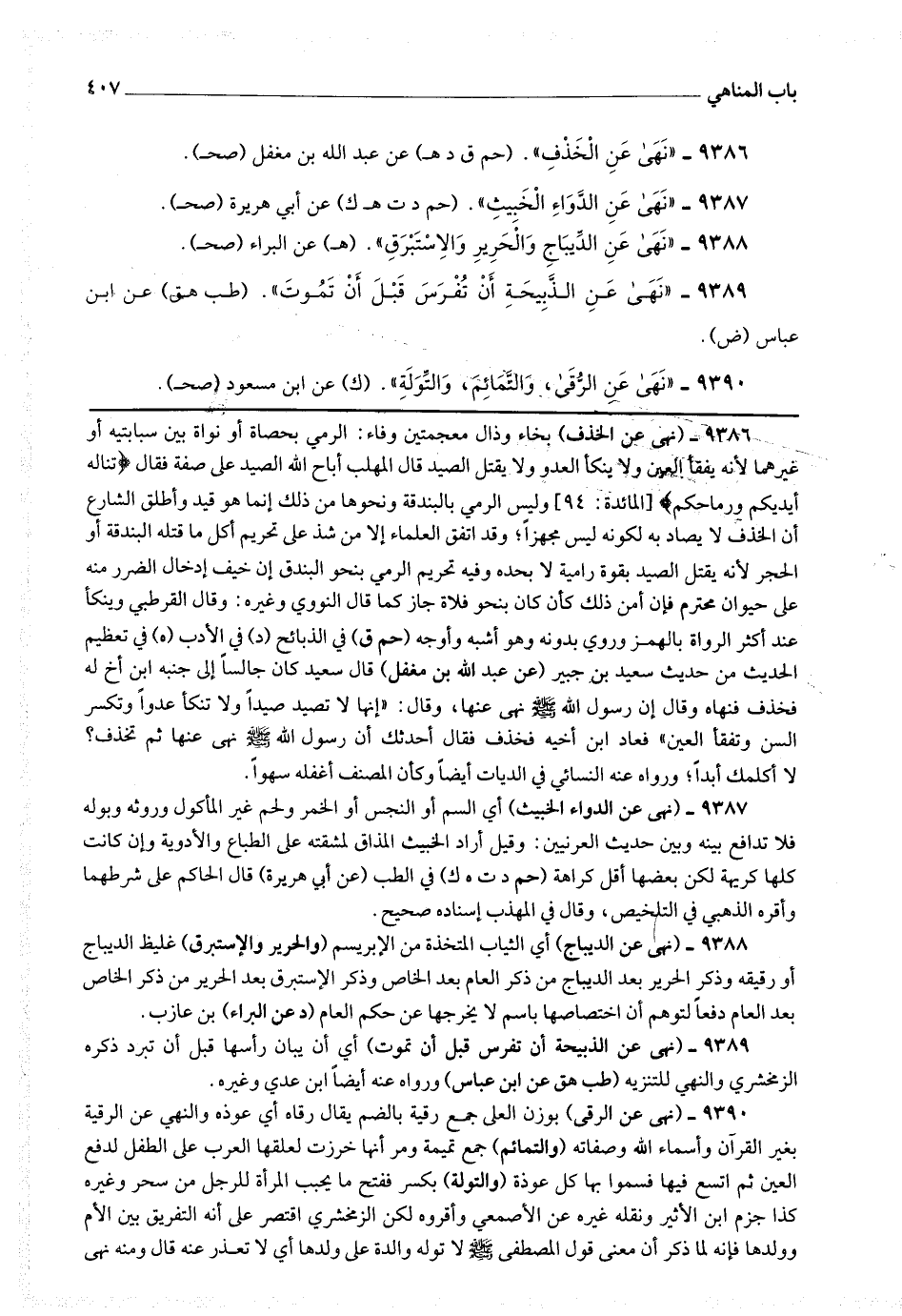 9386 - (نهى عن الخذف) بخاء وذال معجمتين وفاء : الرمي بحصاة أو نواة بين سبابتيه أو