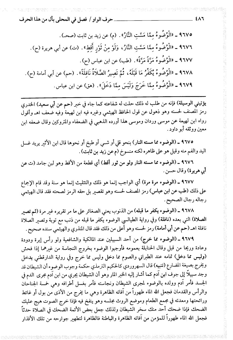 9675 - (الوضوء مما مسته النار) بنحو قلي أو شي أو طبخ أو نحوها قال ابن الأثير : يريد غسل