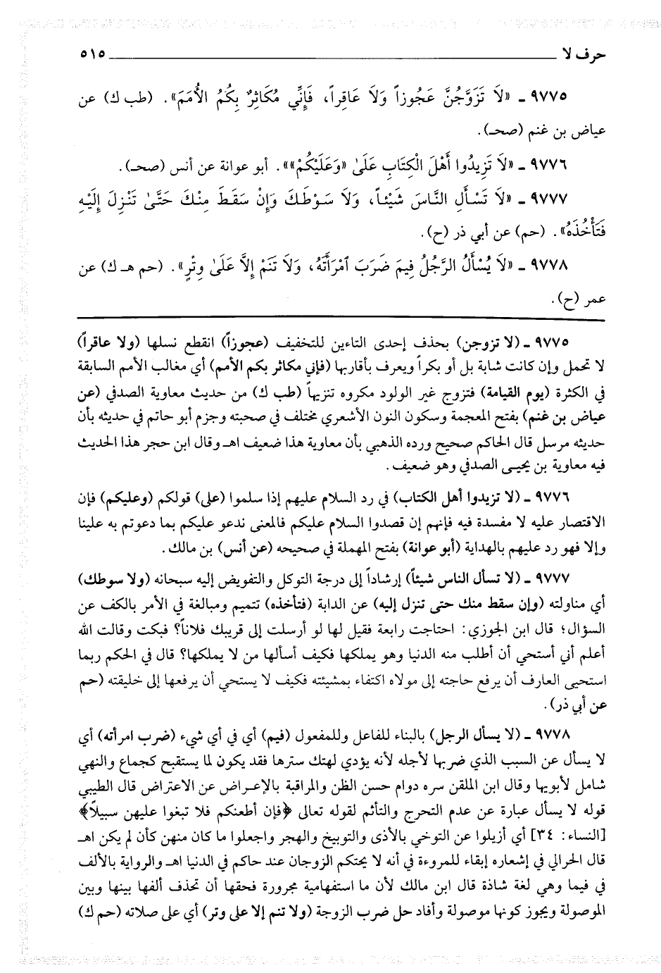 9776 - (لا تزيدوا أهل الكتاب) في رد السلام عليهم إذا سلموا (على) قولكم (وعليكم) فإن الاقتصار عليه لا مفسدة فيه فإنهم إن قصدوا السلام عليكم فالمعنى ندعو عليكم بما دعوتم به علينا