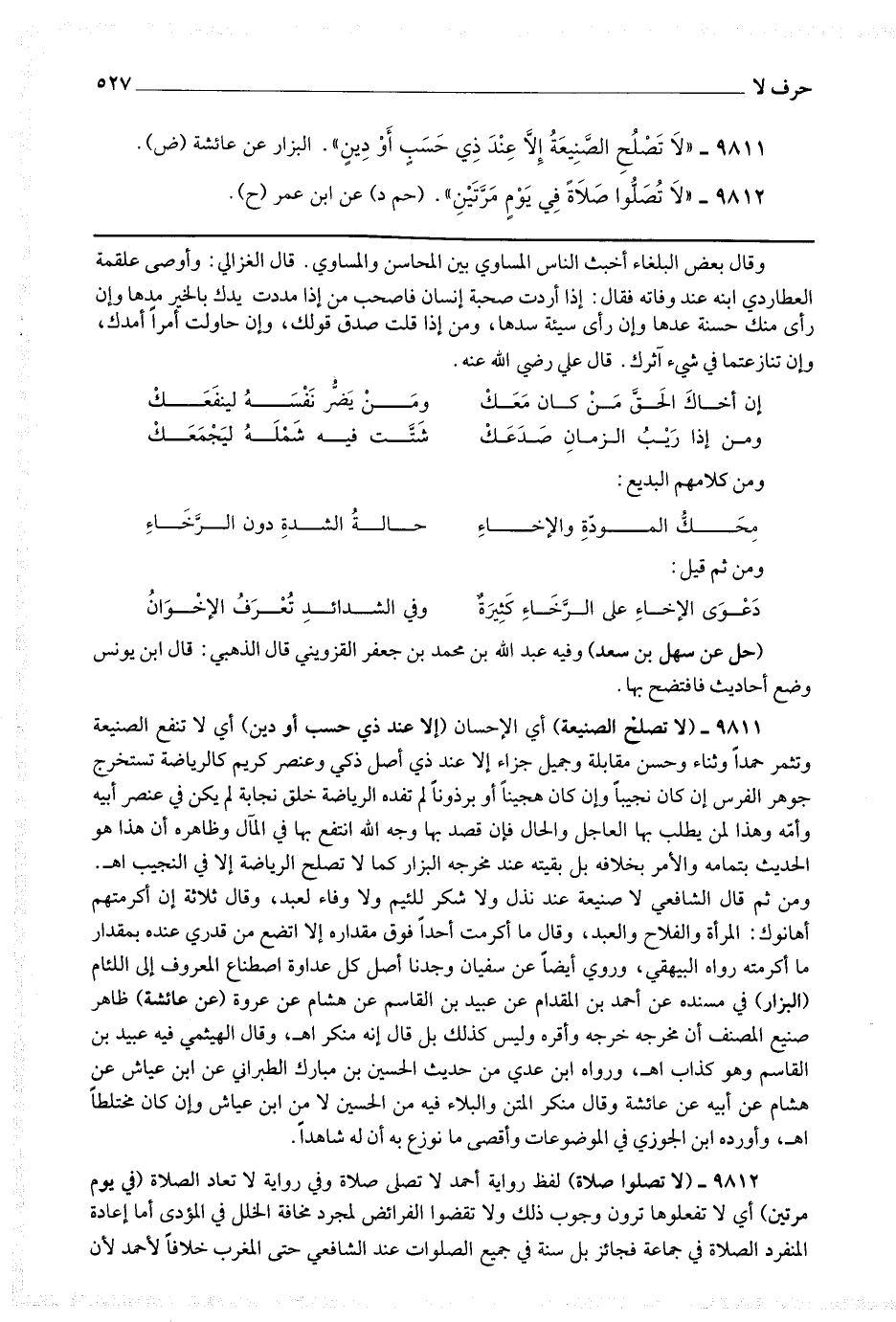 9811 - (لا تصلح الصنيعة) أي الإحسان (إلا عند ذي حسب أو دين) أي لا تنفع الصنيعة وتثمر حمدا وثناء وحسن مقابلة وجميل جزاء إلا عند ذي أصل ذكي وعنصر كريم كالرياضة تستخرج جوهر الفرس إن كان نجيبا وإن كان هجينا أو برذونا لم تفده الرياضة خلق نجابة لم يكن في عنصر أبيه وأمه وهذا لمن يطلب بها العاجل والحال فإن قصد بها وجه الله انتفع بها في المآل وظاهره أن هذا هو الحديث بتمامه والأمر بخلافه بل بقيته عند مخرجه البزار كما لا تصلح الرياضة إلا في النجيب اه ، ومن ثم قال الشافعي : لا صنيعة عند ندل ولا شكر للئيم ولا وفاء لعبد ، وقال : ثلاثة إن أكرمتهم أهانوك : المرأة والفلاح والعبد ، وقال : ما أكرمت أحدا فوق مقداره إلا اتضع من قدري عنده بمقدار ما أكرمته رواه البيهقي ، وروي أيضا عن سفيان : وجدنا أصل كل عداوة اصطناع المعروف إلى اللئام.