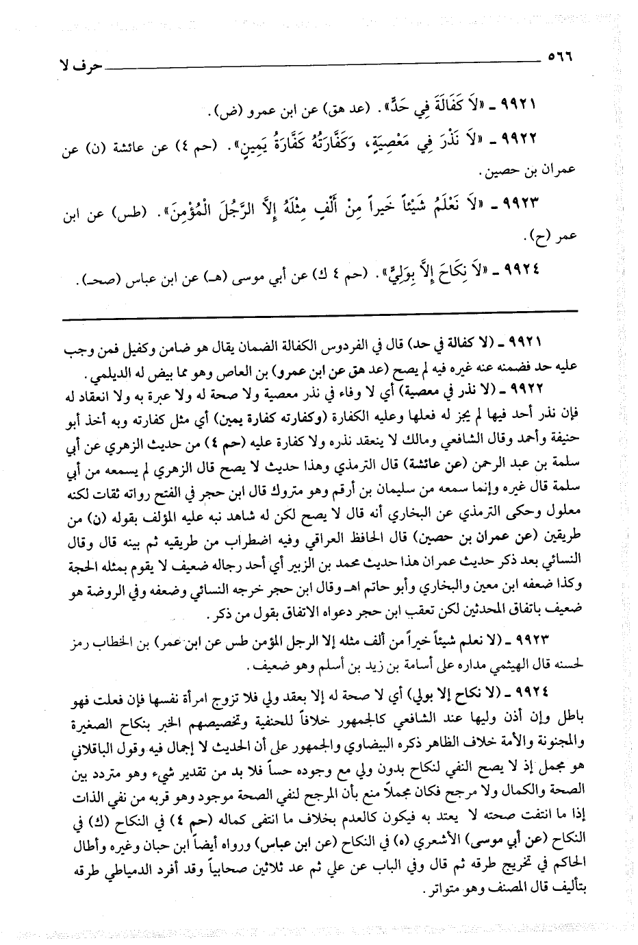 9921 - (لا كفالة في حد) قال في الفردوس : الكفالة الضمان يقال هو ضامن وكفيل فمن وجب عليه حد فضمنه عنه غيره فيه لم يصح (عد هق عن ابن عمرو) بن العاص وهو ما بيض له الديلمي.