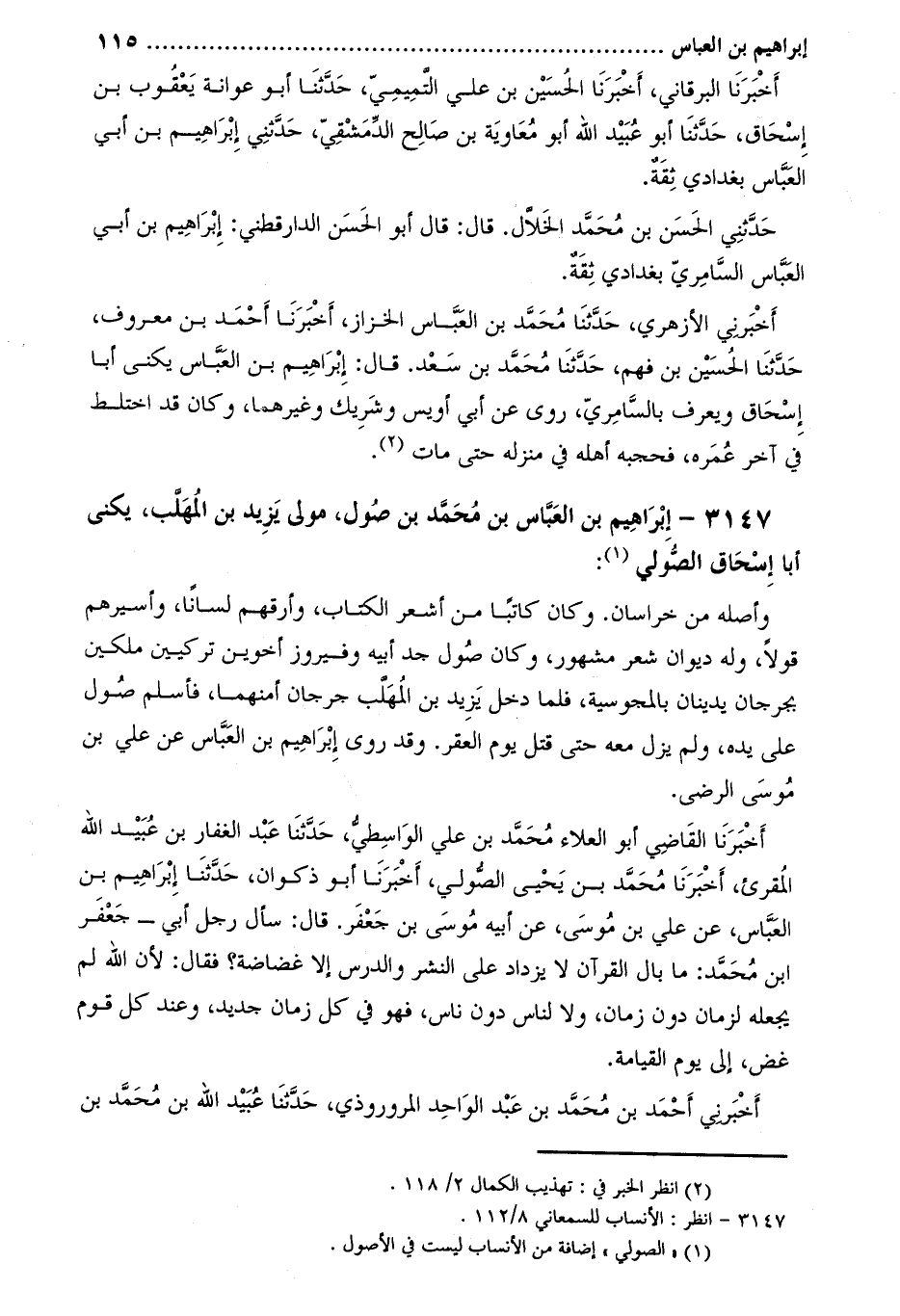 3147-[2] إبراهيم بْن العباس بْن مُحَمَّد بْن صول، مولى يزيد بن المهلب، يكنى أبا إسحاق الصّولي [3] :
