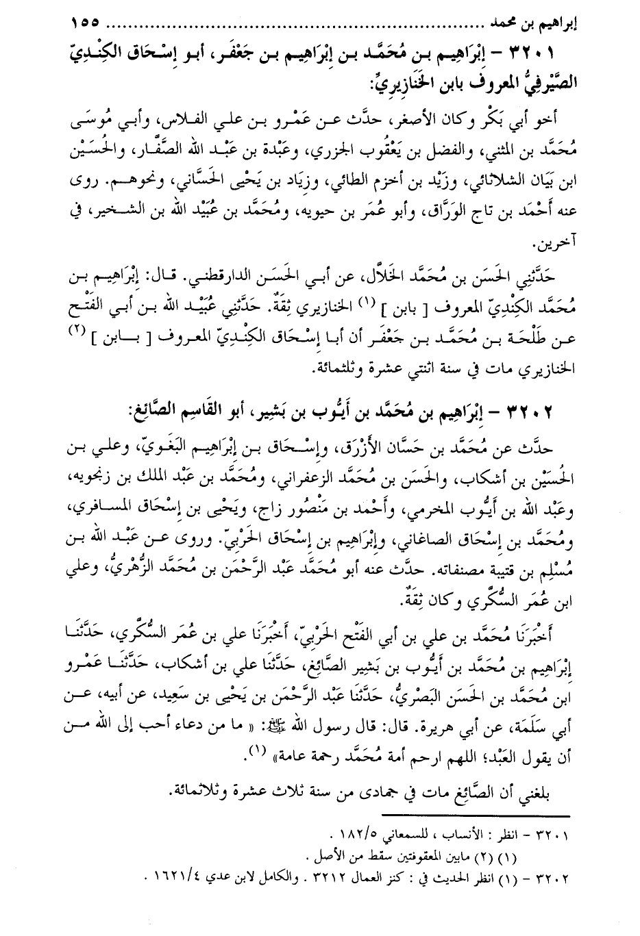 3201- إبراهيم بْن مُحَمَّد بْن إِبْرَاهِيم بْن جعفر، أَبُو إسحاق الكندي الصيرفي المعروف بابن الخنازيري [1] :