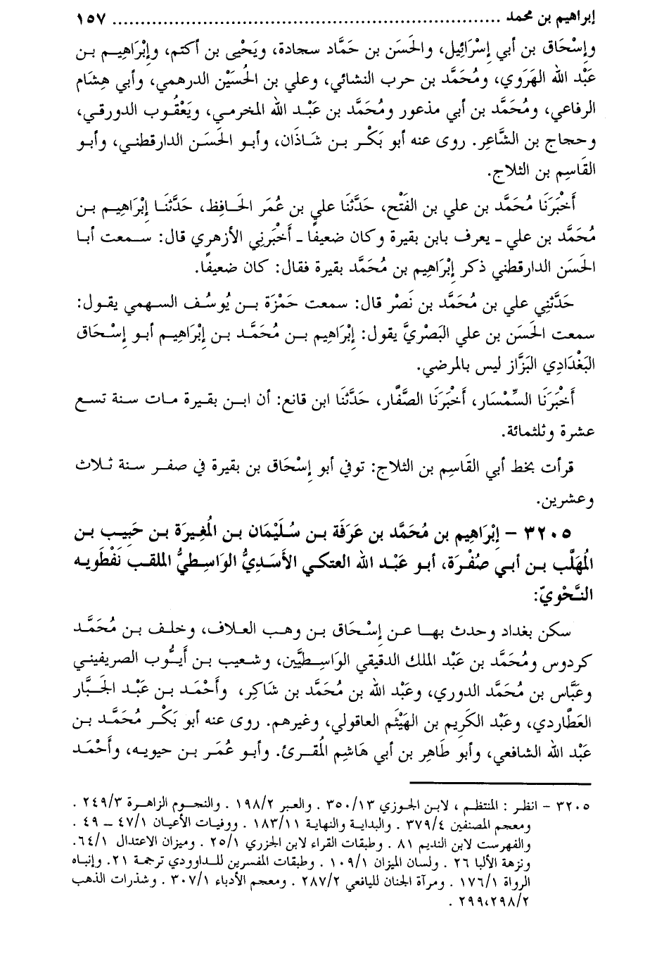 3205- إبراهيم بن محمد بن عرفة بن سليمان بن المغيرة بْن حبيب بْن المهلب بْن أبي صفرة، أبو عبد الله العتكي الأسديّ الواسطي الملقب نفطويه النحوي [1] :