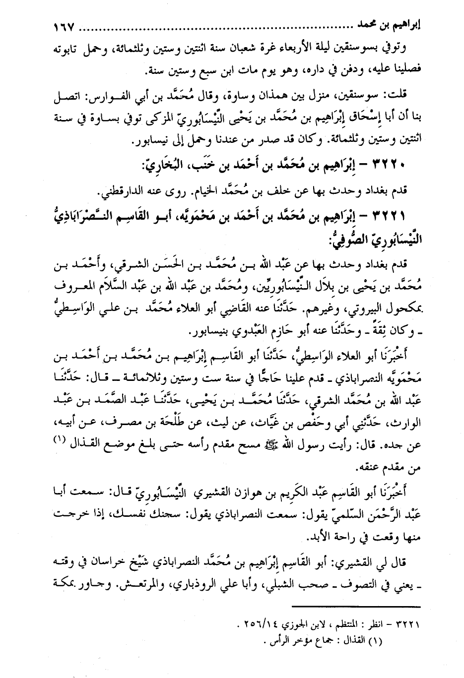 3221- إبراهيم بن مُحمد بن أحمد بن محمويه، أبو القاسم النصرآباذي النيسابوري الصوفي [1] :