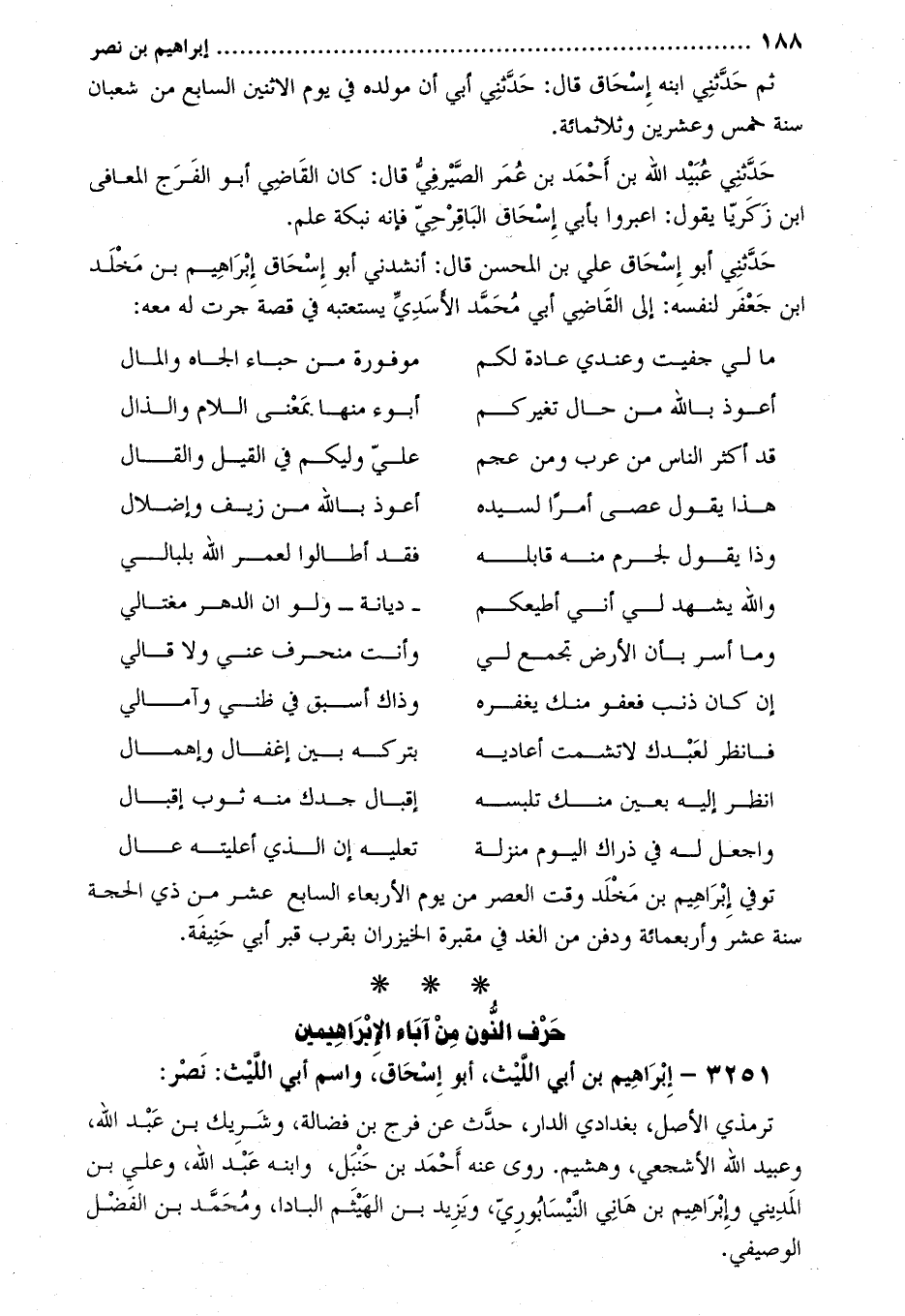 3251- إبراهيم بن أبي الليث، أبو إسحاق، واسم أبي الليث: نصر [1] :
