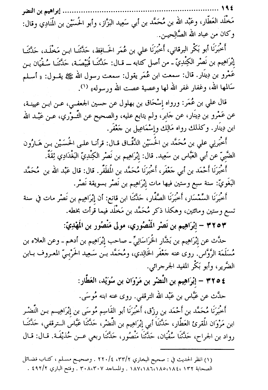 3253- إبراهيم بن نصر المنصوري، مولى منصور بن المهدي: