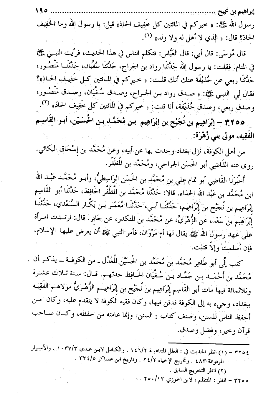 . 3255- إبراهيم بن نَجِيح بن إبراهيم بن محمد بن الحسين، أبو القاسم الفقيه، مولى بني زهرة [3] :