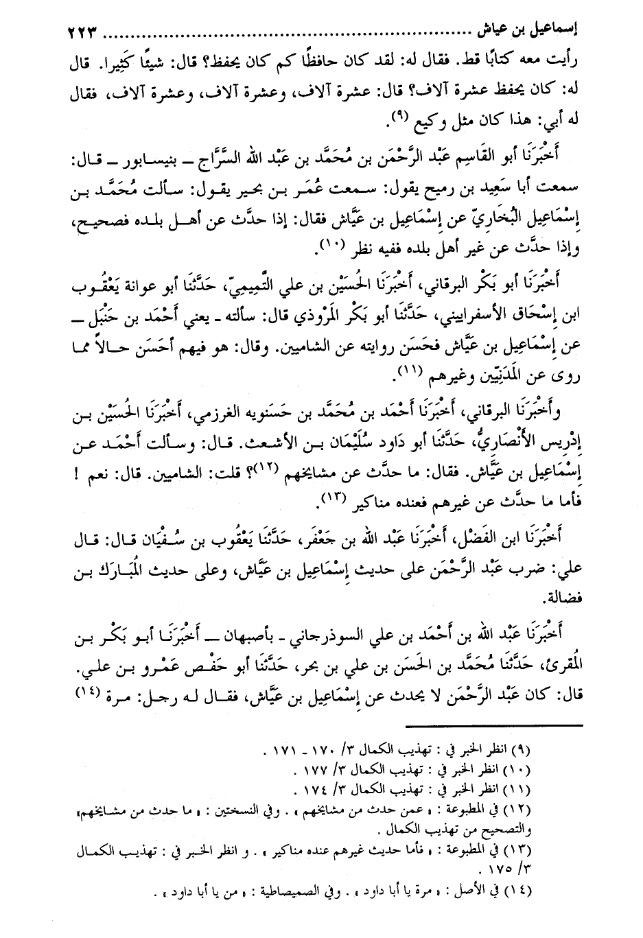 وأخبرنا البرقاني، أخبرنا أحمد بن محمّد بن حسنويه الغرزمي، أخبرنا الحسين بن إدريس الأنصاريّ، حدثنا أبو داود سليمان بن الأشعث. قال: وسألت أحمد عن إسماعيل بن عياش. فقال: ما حدث عن مشايخهم [4] ؟ قلت: الشاميين. قال: نعم! فأما ما حدّث عن غيرهم فعنده مناكير [5] .