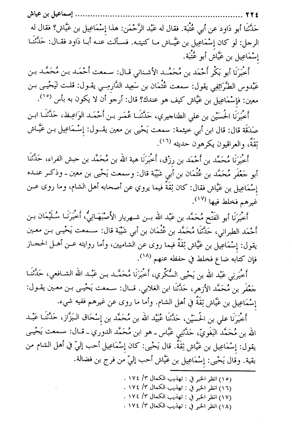 أَخْبَرَنَا مُحَمَّدُ بْنُ أَحْمَدَ بْنِ رِزْقٍ، أَخْبَرَنَا هبة الله بن محمد بن حبش الفراء، حَدَّثَنَا أَبُو جَعْفَر مُحَمَّد بْن عُثْمَانَ بْن أَبِي شيبة قَالَ: وسمعت يَحْيَى بن معين- وذكر عنده إسماعيل بن عياش فقال: كان ثقة فيما يروي عن أصحابه أهل الشام، وما روى عن غيرهم فخلط فيها [3] .
