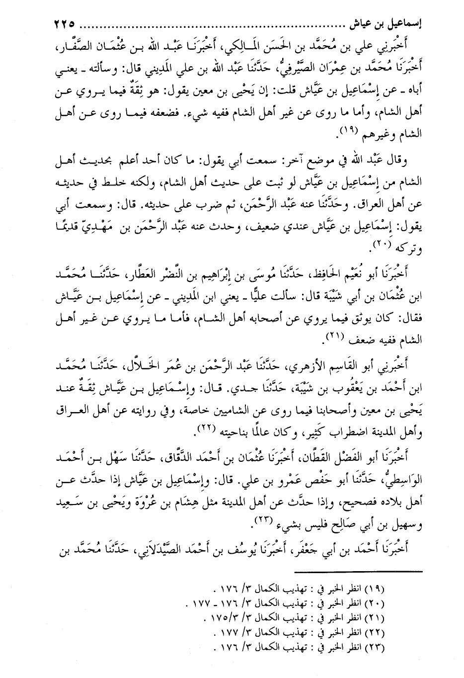 أخبرني أبو القاسم الأزهري، حدّثنا عَبْد الرَّحْمَن بْن عُمَر الخلال، حَدَّثَنَا مُحَمَّد ابن أحمد بن يعقوب بن شيبة، حدثنا جدي. قال: وإسماعيل بن عياش ثقة عند يحيى بن معين وأصحابنا فيما روى عن الشاميين خاصة، وفي روايته عن أهل العراق وأهل المدينة اضطراب كثير، وكان عالما بناحيته [4] .