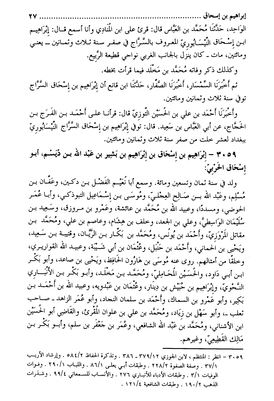 3059- إِبْرَاهِيم بْن إِسْحَاق بْن إِبْرَاهِيم بْن بشير بْن عَبْد اللَّهِ بْن ديسم، أَبُو إِسْحَاق الحربي [1] :