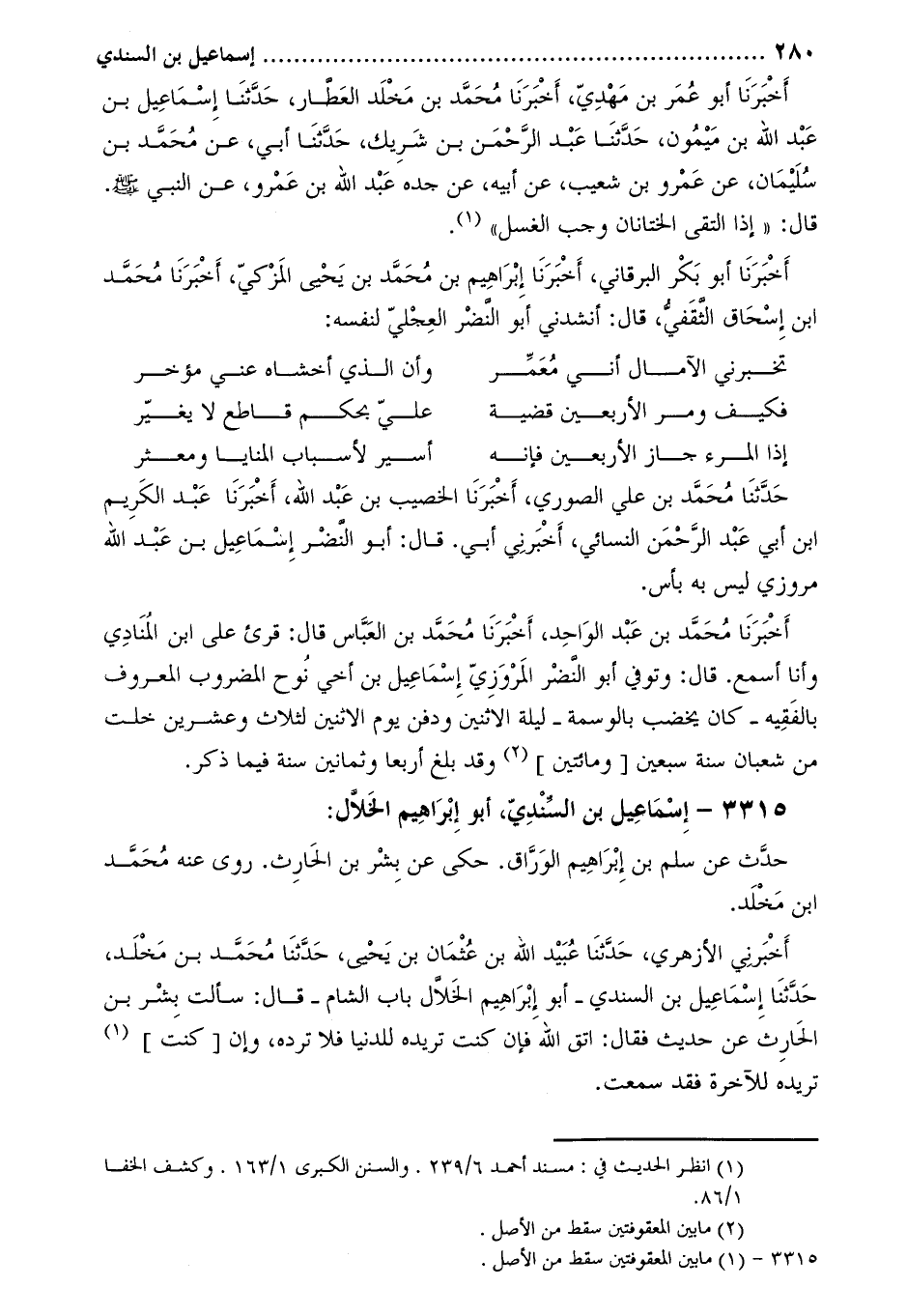 3315- إسماعيل بن السندي، أبو إبراهيم الخلال: