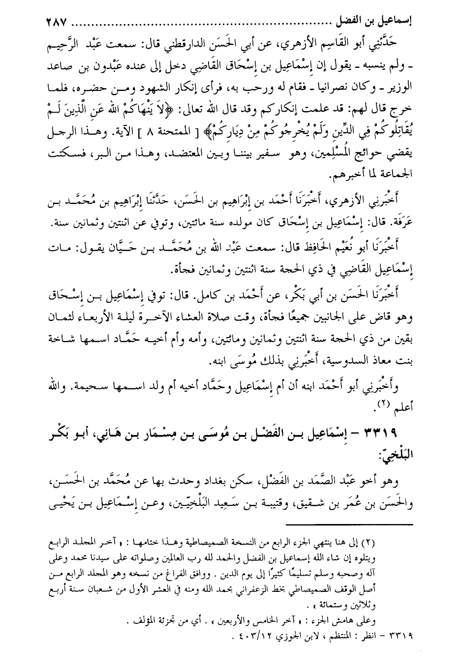 [2] 3319- انظر: المنتظم، لابن الجوزي 12/403.