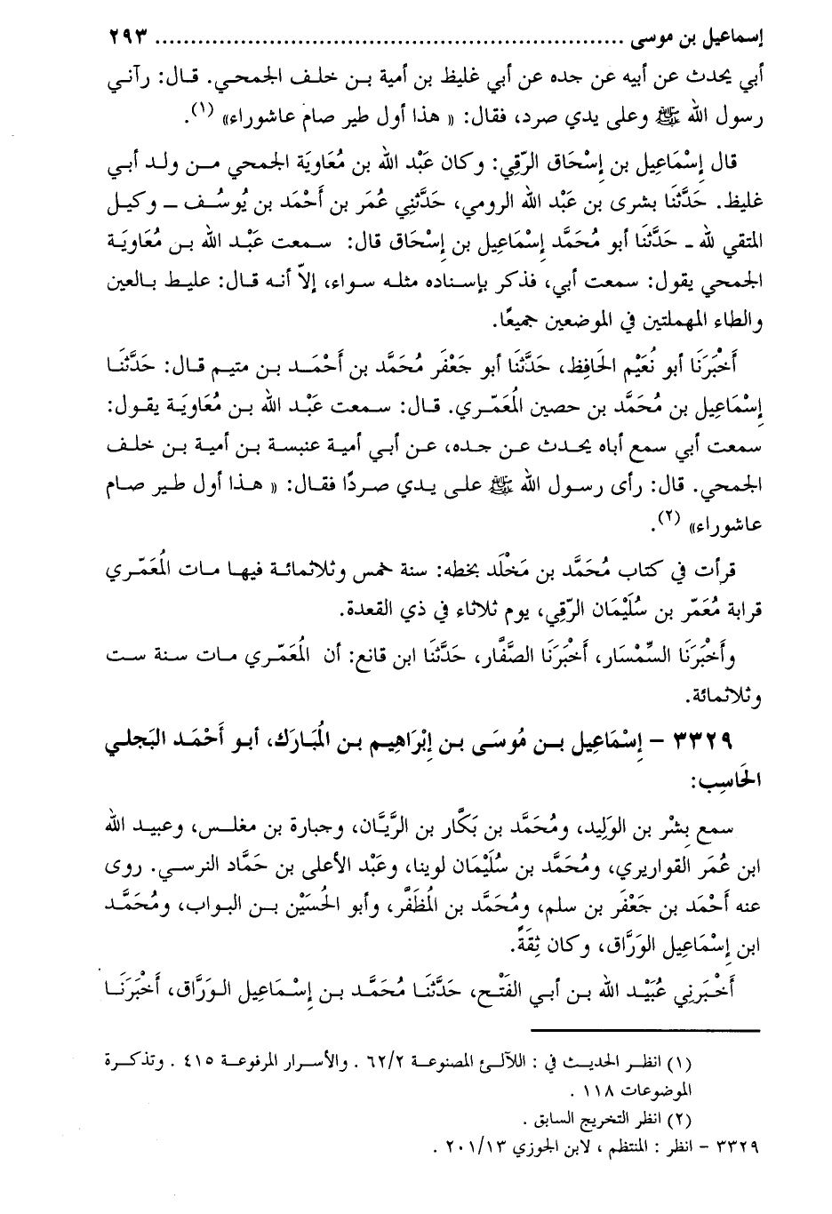 3329- إسماعيل بن موسى بن إبراهيم بن المبارك، أبو أحمد البجلي الحاسب [3] :
