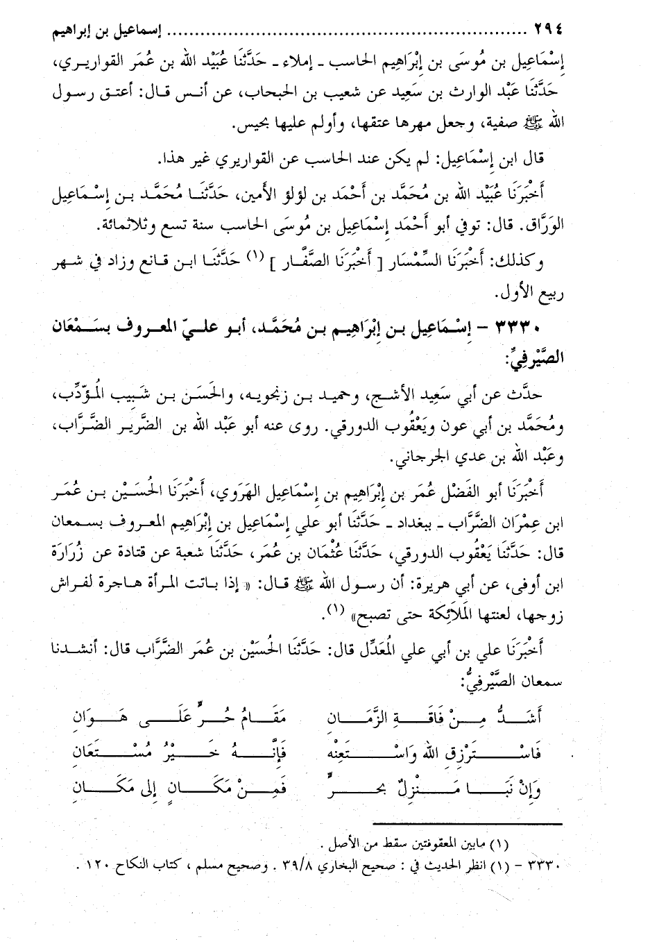 3330- إسماعيل بن إبراهيم بن محمد، أبو علي المعروف بسمعان الصيرفي: