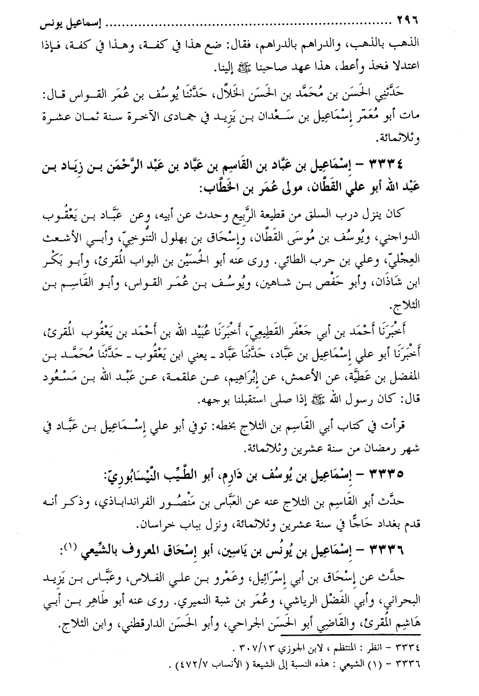 3336- إسماعيل بن يونس بن ياسين، أبو إسحاق المعروف بالشيعي [2] :