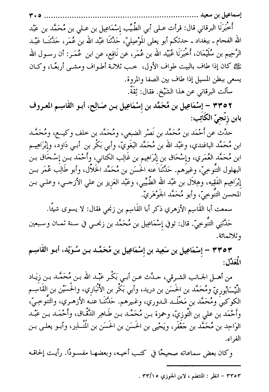 3353- إِسْمَاعِيل بْن سَعِيد بْن إِسْمَاعِيل بْن مُحَمَّد بن سويد، أبو القاسم المعدل [1] :
