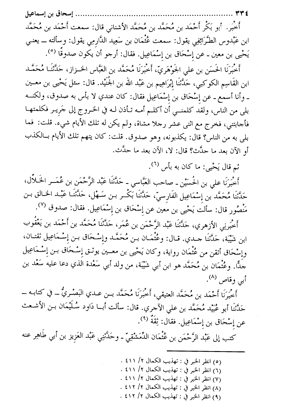 أَخْبَرَنَا أَبُو بَكْرٍ أَحْمَدُ بْنُ مُحَمَّدِ بْنِ محمد الأشناني قَالَ: سمعت أحمد بن محمد ابن عبدوس الطرائفي يقول: سمعت عثمان بن سعيد الدارمي يقول: وسألته- يعني يحيى بن معين- عن إسحاق بن إسماعيل. فقال: أرجو أن يكون صدوقا [5] .