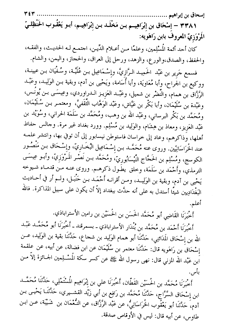 3381- إسحاق بن إبراهيم بن مخلد بن إبراهيم، أبو يعقوب الحنظلي المروزي المعروف بابن راهويه [1] :