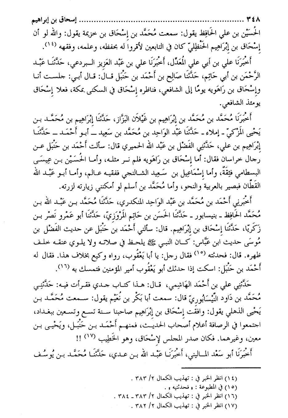 حدثني علي بن أحمد الهاشمي، قَالَ: هذا كتاب جدي فقرأت فيه: حَدَّثَنِي محمد بن داود النيسابوري قال: سمعت أبا بكر بن نعيم يقول: سمعت محمد بن يحيى الذهلي يقول: وافقت إسحاق بن إبراهيم صاحبنا سنة تسع وتسعين ببغداد، اجتمعوا في الرصافة أعلام أصحاب الحديث، فمنهم أَحْمَد بْن حَنْبَل، وَيحيى بْن معين، وَغيرهما. فكان صدر المجلس لإسحاق، وهو الخطيب [4] !! أخبرنا أَبُو سعد الماليني، أَخْبَرَنَا عَبْد اللَّه بْن عدي، حدّثنا محمّد بن يوسف