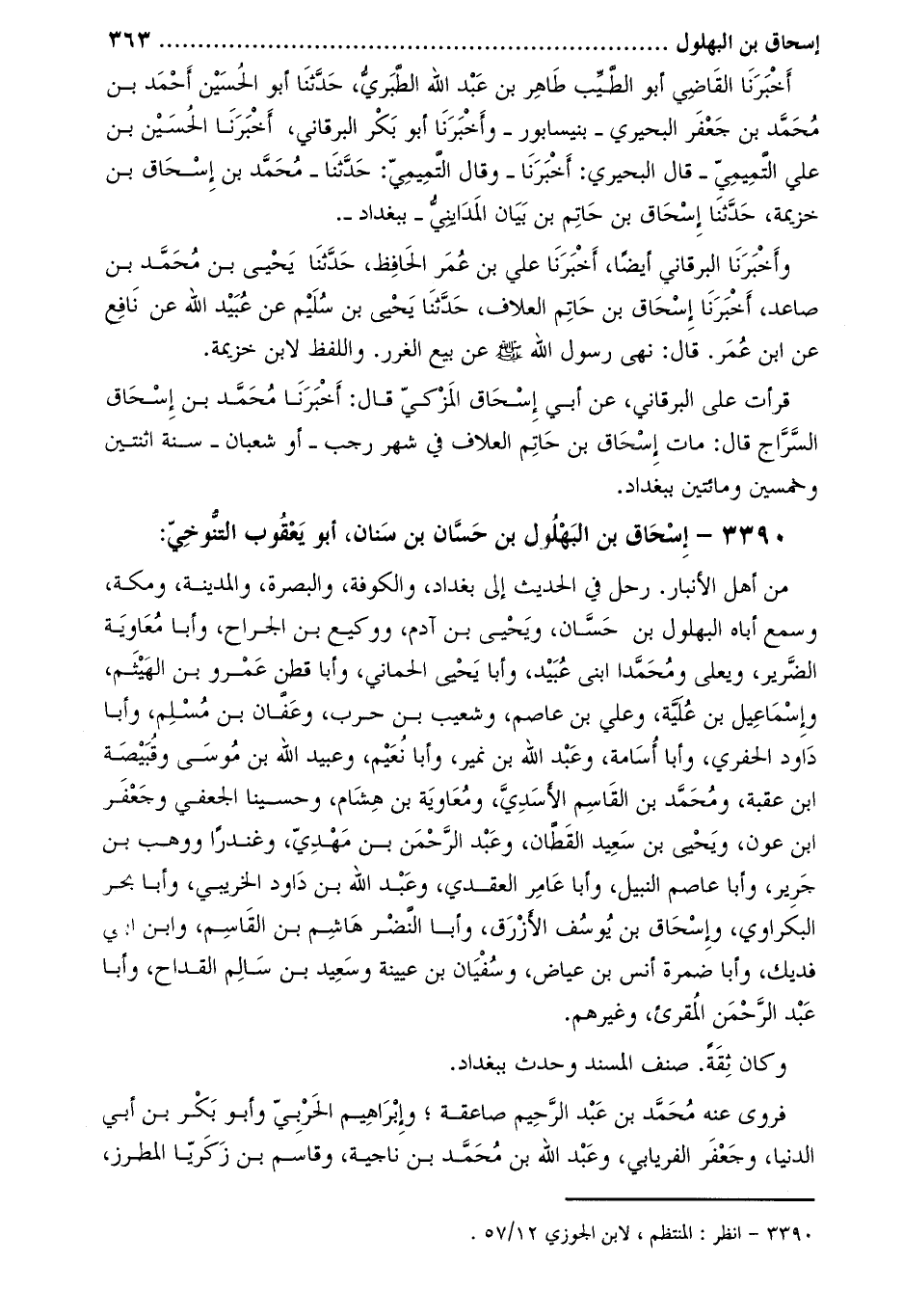 [1] 3390- انظر: المنتظم، لابن الجوزي 12/57.