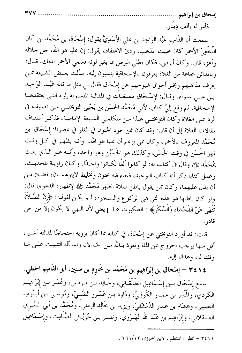 قلت: قد أورد النوبختي عن إسحاق في كتابه مما كان يرويه احتجاجا لمقالته أشياء أقل منها يوجب الخروج عن الملة ونعوذ بالله من الخذلان ونسأله التثبيت على ما وفقنا له، وهدانا إليه.